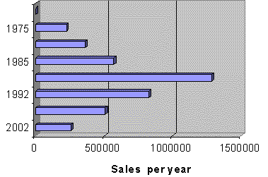 1954 200,000 1959 1,800,000 1968 3,276,000 1977-78 5,437,000